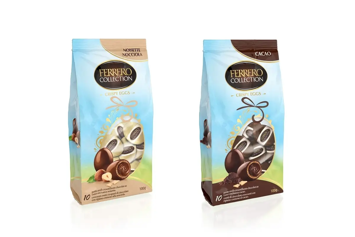 Un’altra novità sono i Ferrero Collection Crispy Eggs, croccanti ovetti ricoperti con cioccolato al latte o fondente con un ripieno cremoso alla nocciola o al cacao. In un formato perfetto per essere condiviso