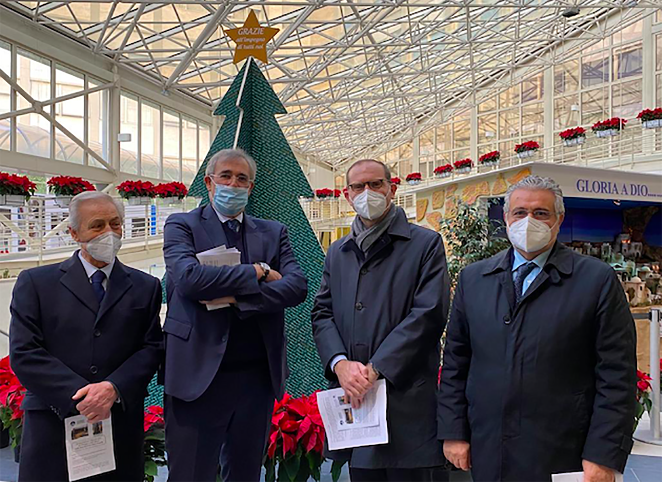 Il presidente di Confagricoltura Massimiliano Giansanti (terzo da sinistra) consegna 5.500 stelle di Natale al Policlinico Gemelli di Roma