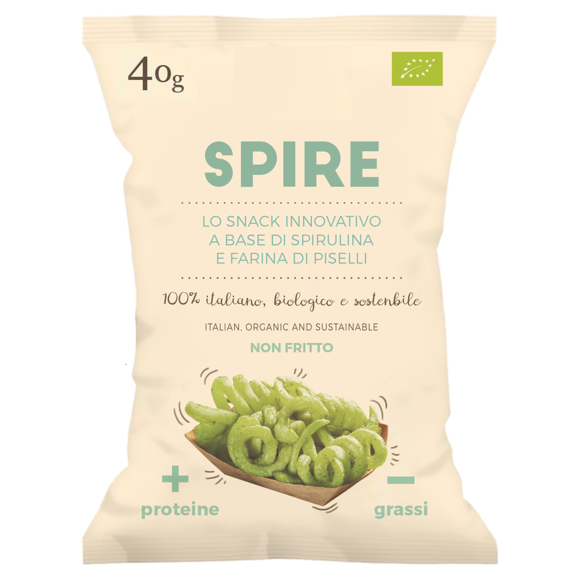 Spire, lo snack innovativo a base di spirulina e farina di piselli