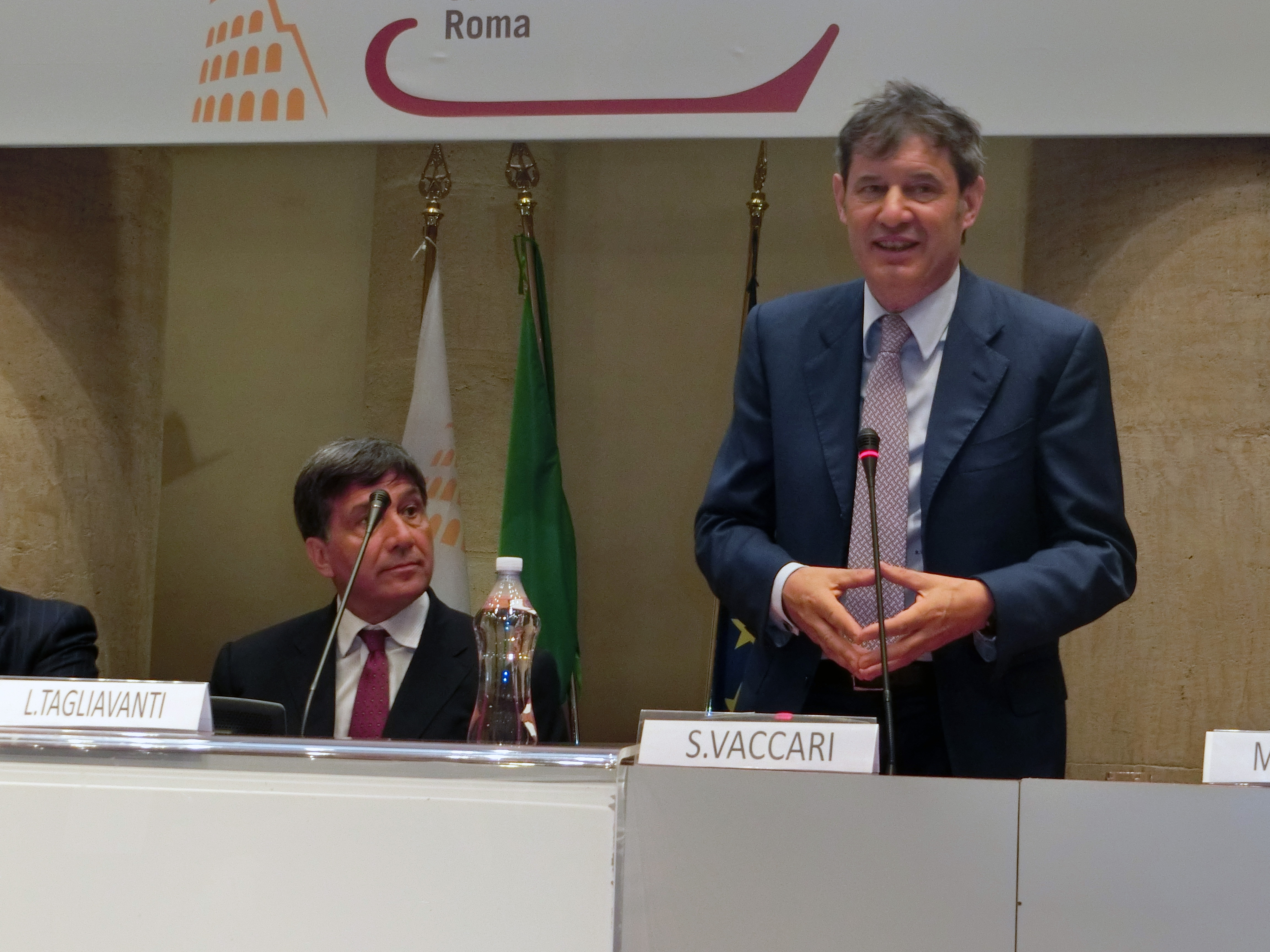 Lorenzo Tagliavanti e Stefano Vaccari, durante la cerimonia di assegnazione del "Premio cerevisia 2018" avvenuta in data 12 giugno 2018, presso la sala del Tempio di Adriano a Roma