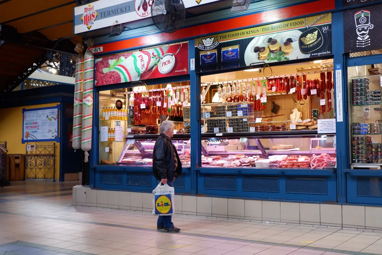 Un cliente in un mercato deserto di Budapest in Ungheria