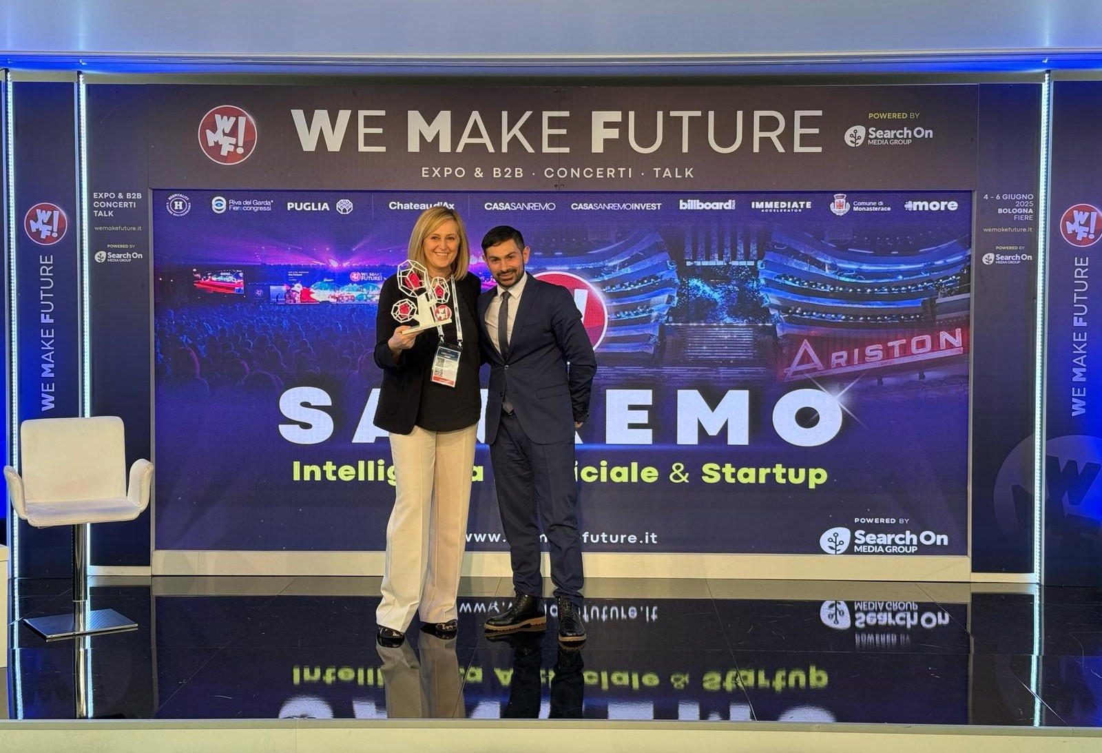 Casa Sanremo 2025 da sx Alessandra Albarelli DG Riva del Garda Fierecongressi e Cosmano Lombardo Founder WMF