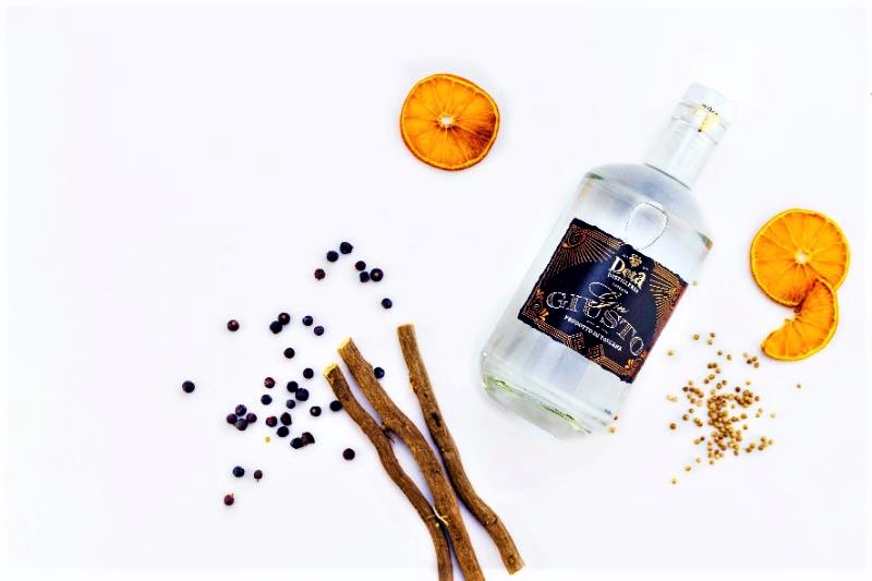 Gin Giusto, fatto con bacche di ginepro toscano: nelle sue note, coriandolo, pepe nero, angelica, liquirizia e agrumi